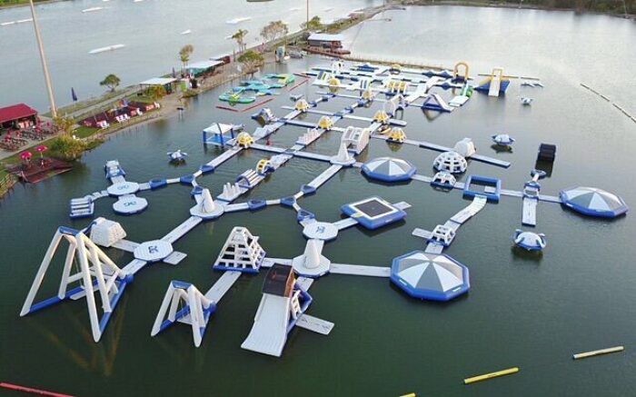 Located within the Bli Bli Watersports Complex the Aqua Park is a series of inflatable slides, runways, blast bags and bouncers all connected together and floating in a large sectioned off area of the back lake. Its the most fun for your money you could ever imagine and reflects our desire to make the Bli Bli Watersports Complex a family friendly environment where there is something for all ages to do.